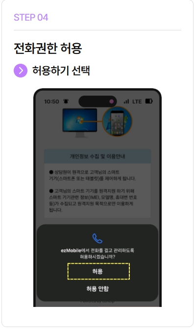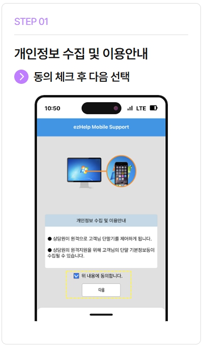3.다운로드된 ezHelpClient.exe 파일을 실행하고 상담원 연결을